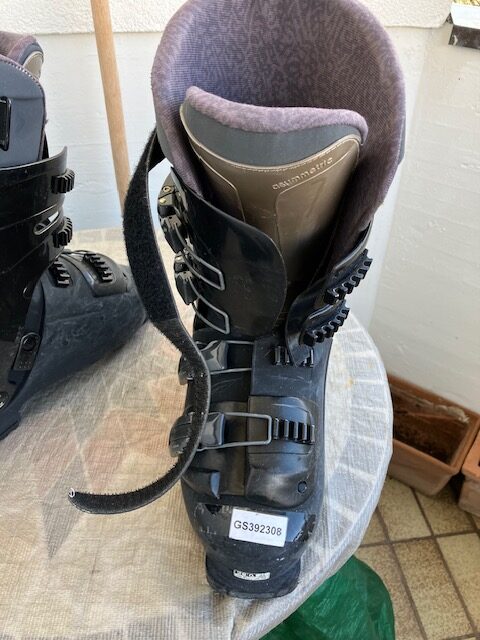 Sowie 1 Paar Herrenskischuhe Salomon Gr. 28,5 (44/45), für 35,–€